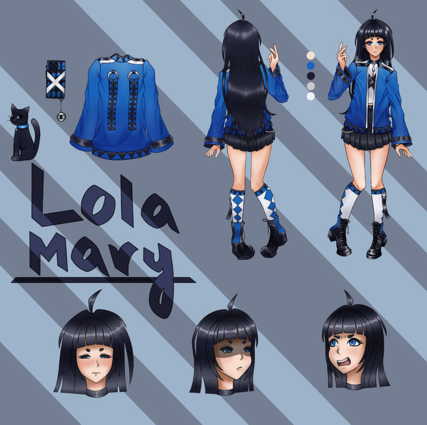 Commission Price: $80 (includes basic commercial rights)Character reference sheet includes a final semi-rendered character with base colors, a front and back view, 3 expressions, and extra items for a character that you want me to create. This character can be used however you like.